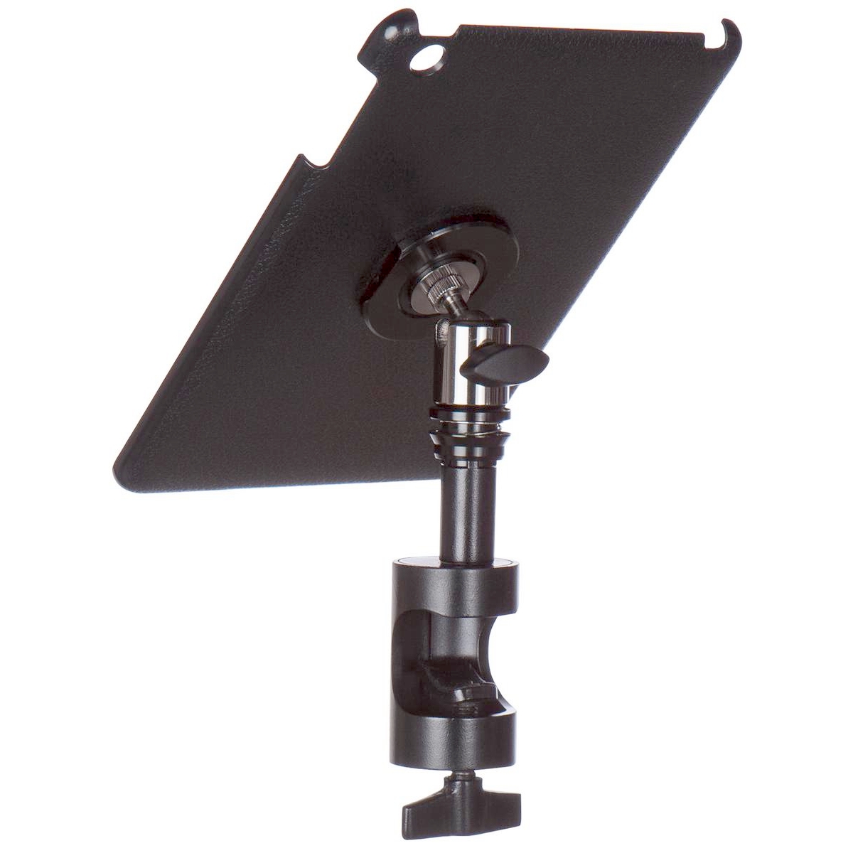 Крепеж в виде струбцины позволяет закрепить держатель к различным стойкам, и даже за держатель подголовника в автомобиле.