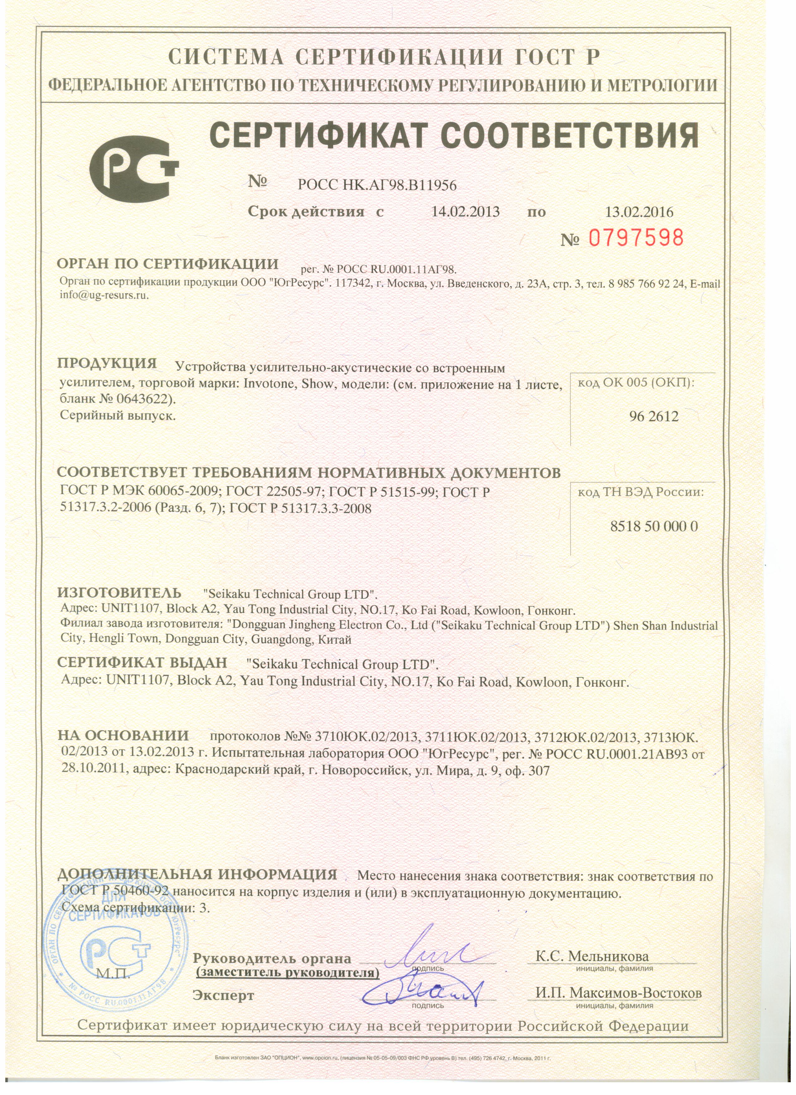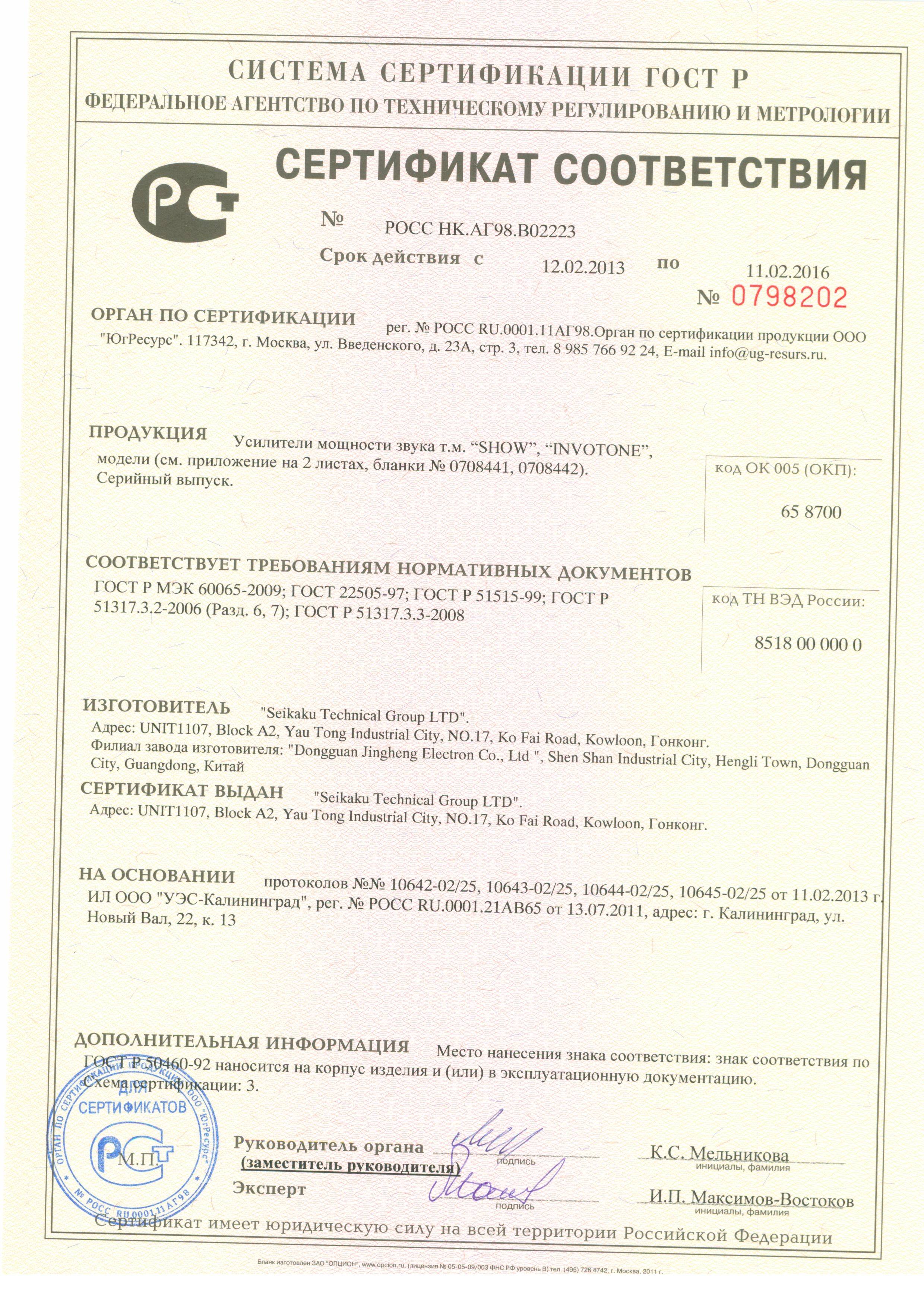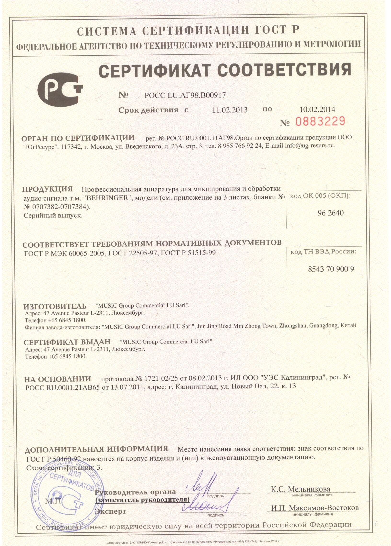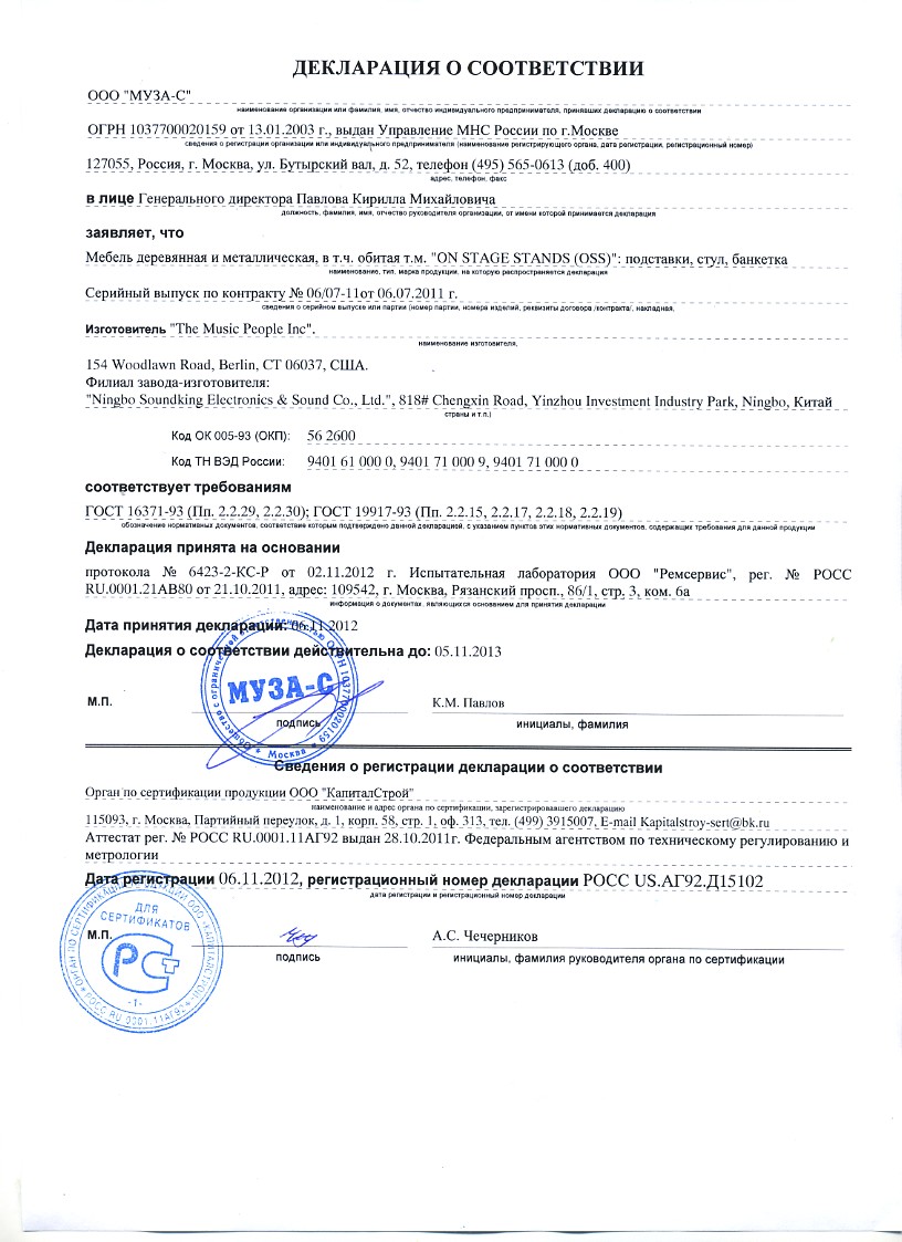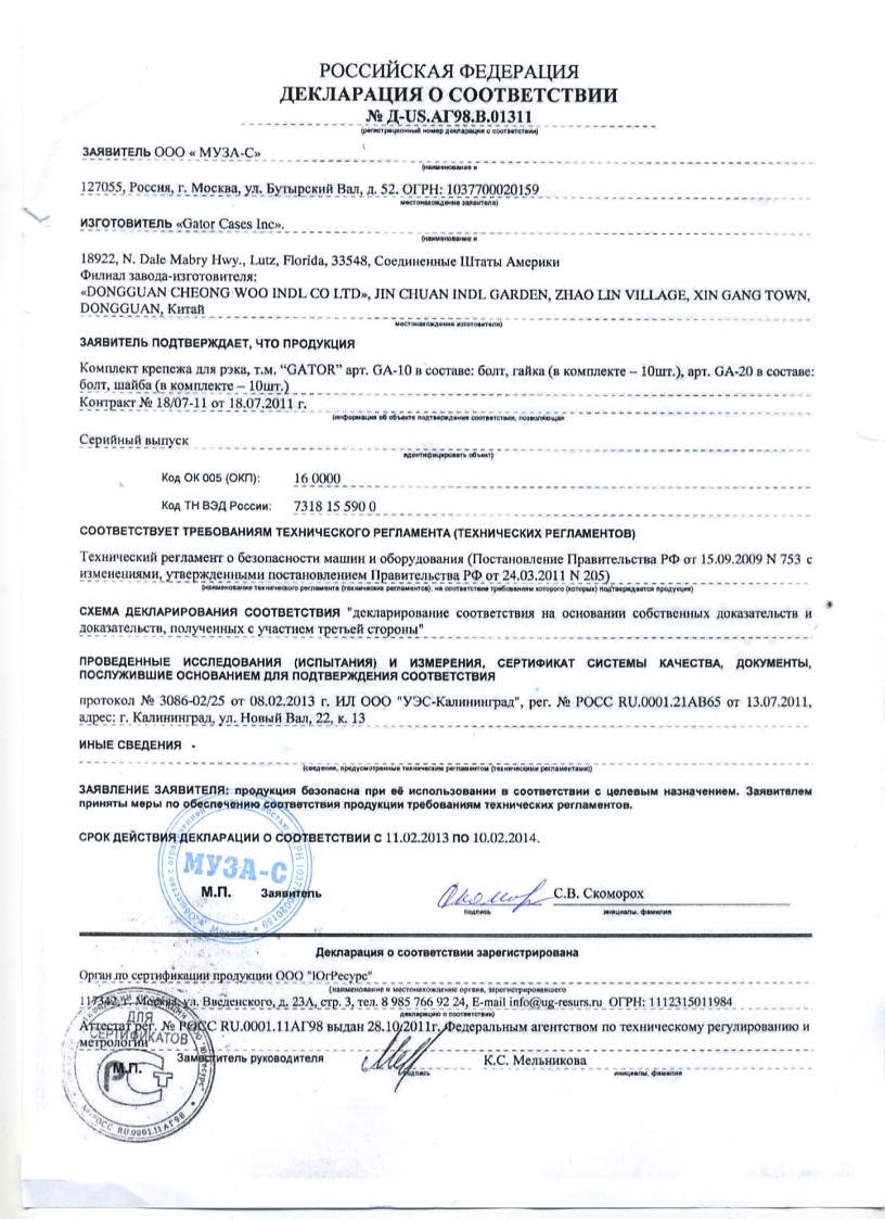 - Декларация соответствия на микрофоны, наушники, радиосистемы, стойки, кейсы, антенны и т.д. (до 18.06.2017 г.) (стр.1) (стр.2)