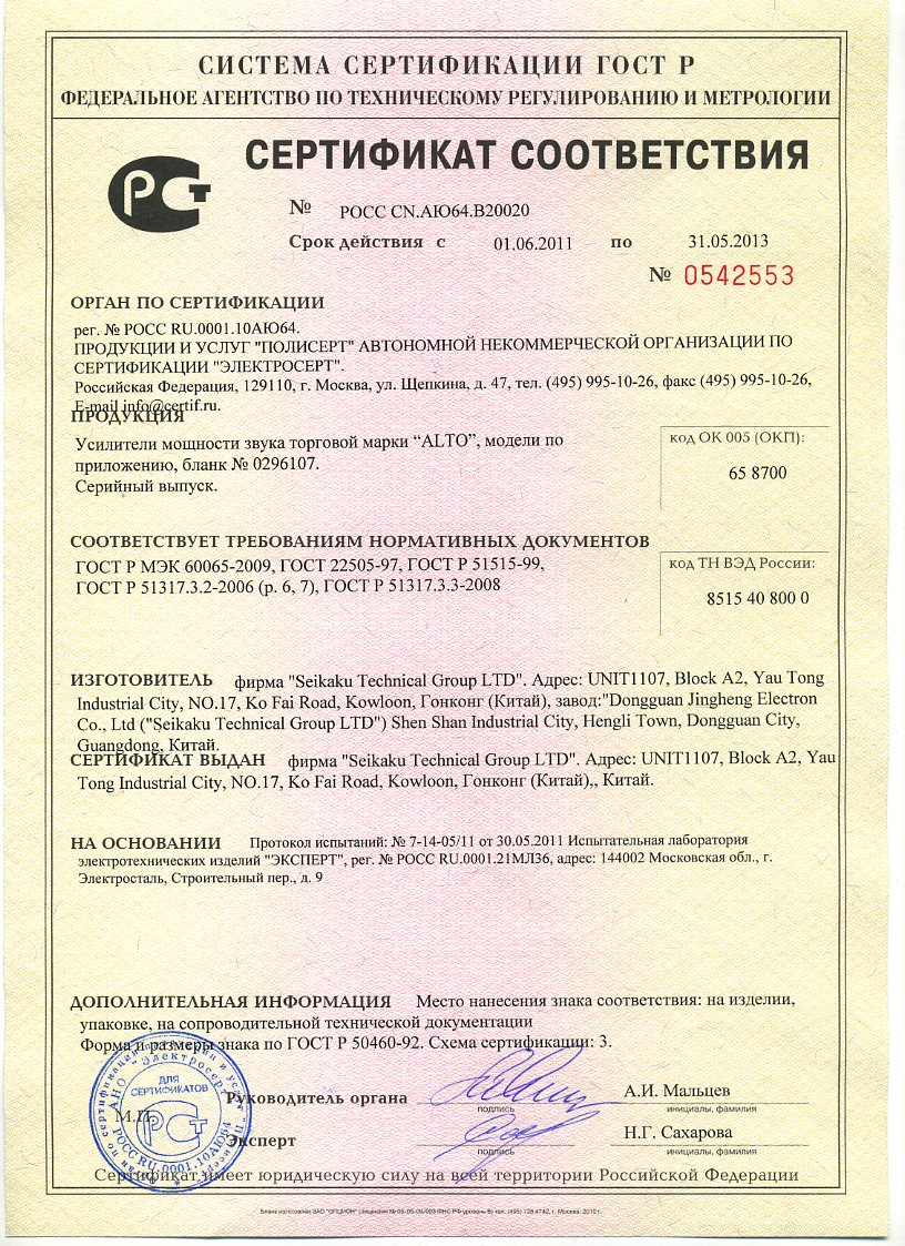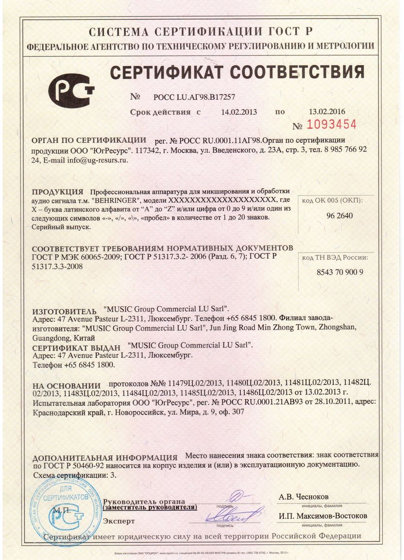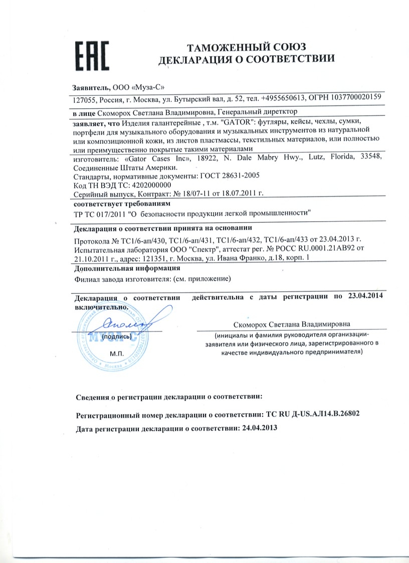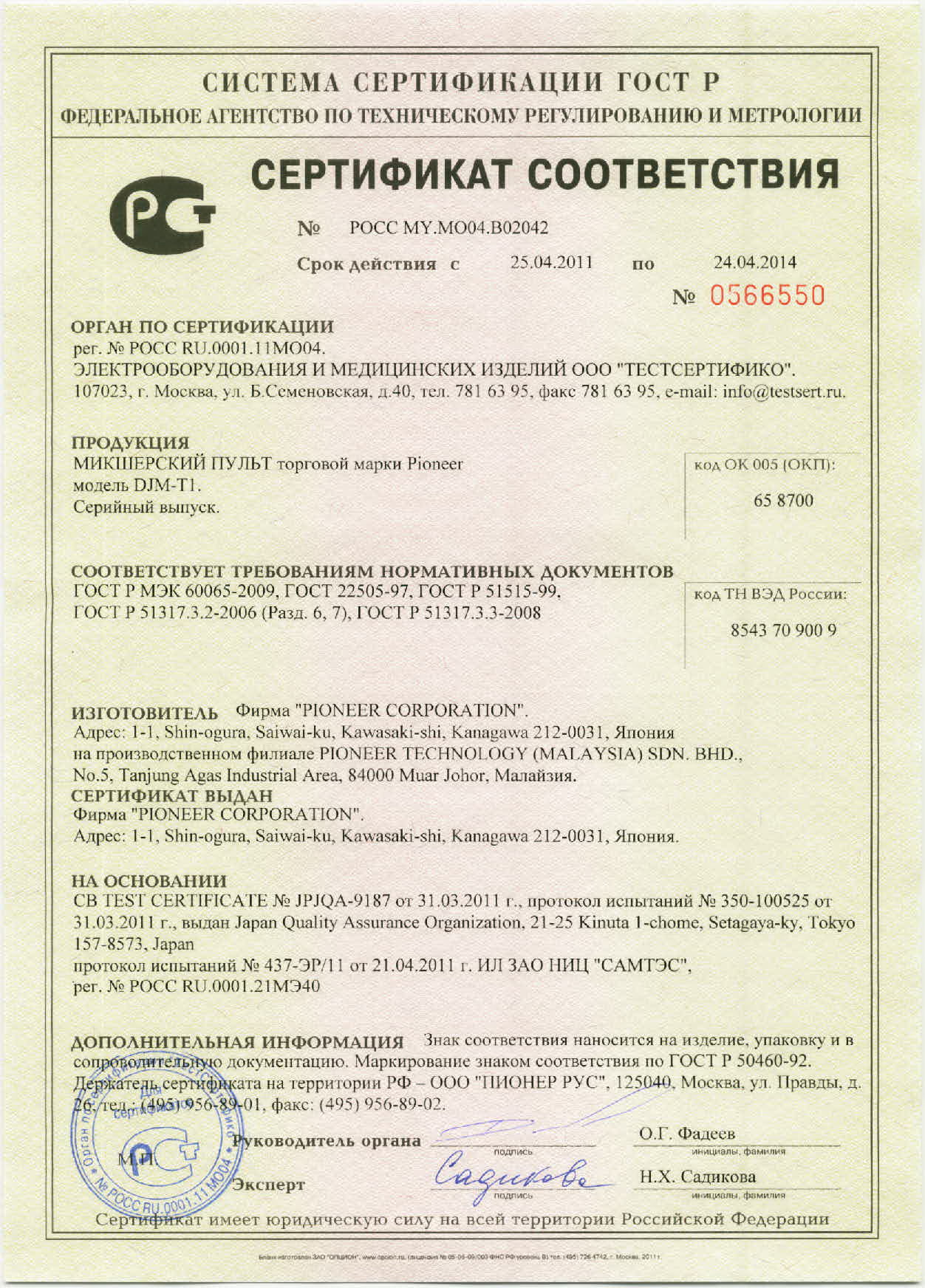 - Декларация соответствия на микрофоны, наушники, радиосистемы, стойки, кейсы, антенны и т.д. (до 18.06.2017 г.) (стр.1) (стр.2)