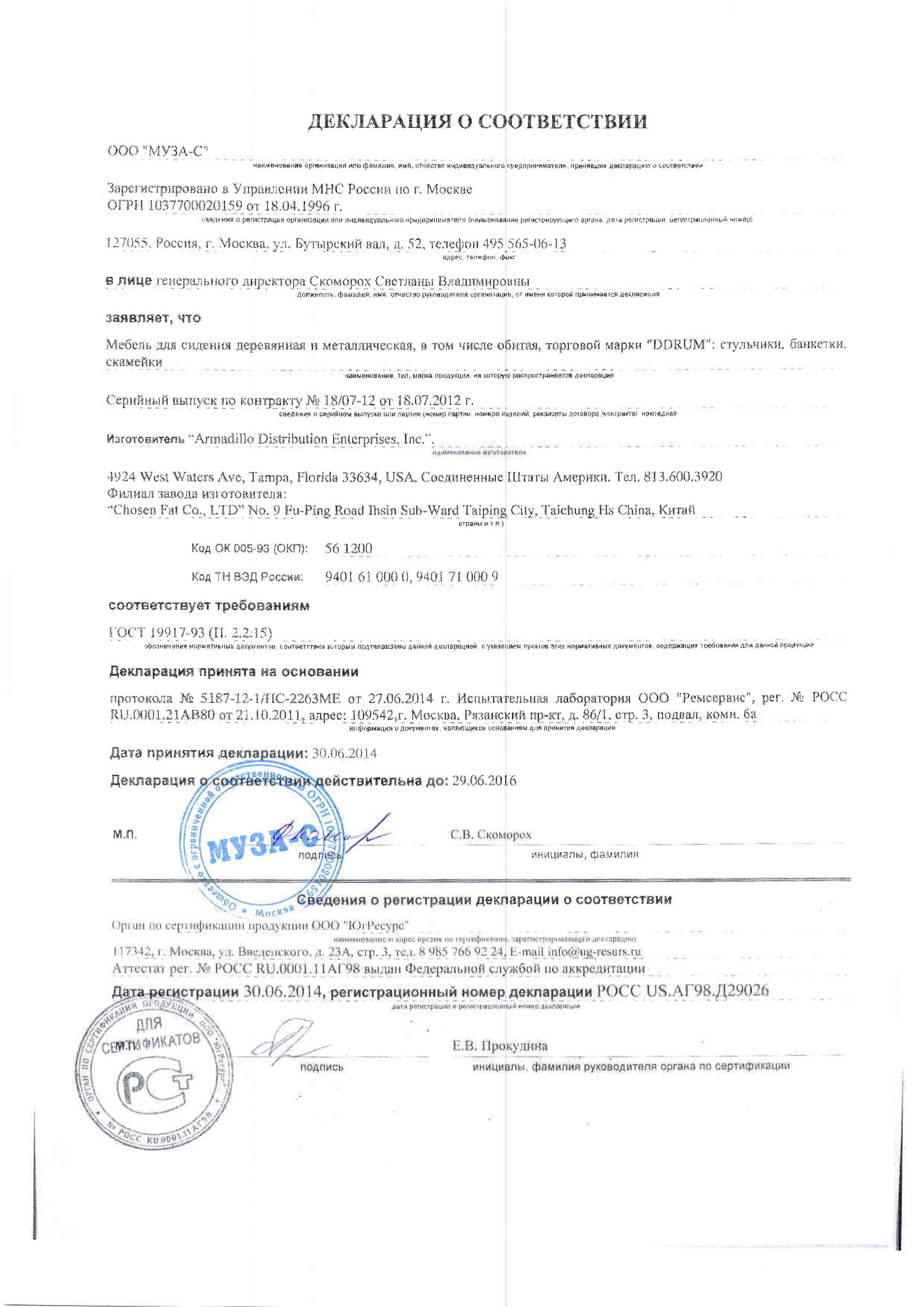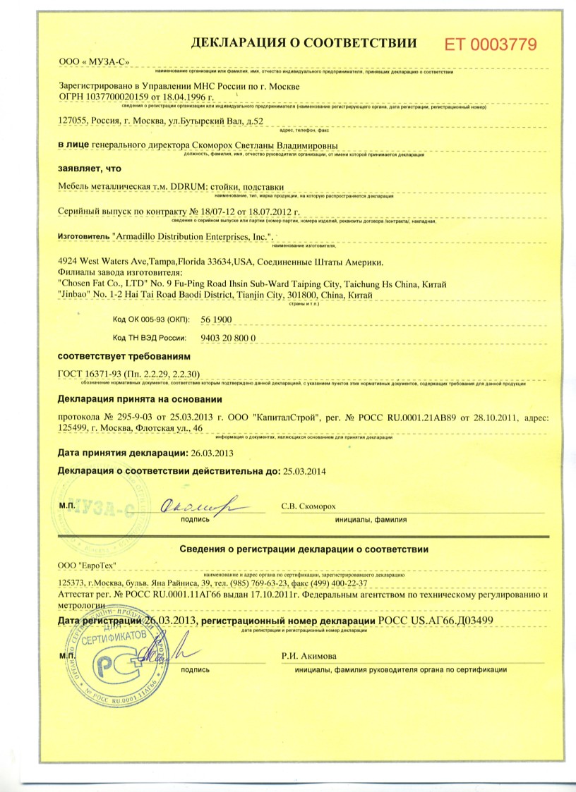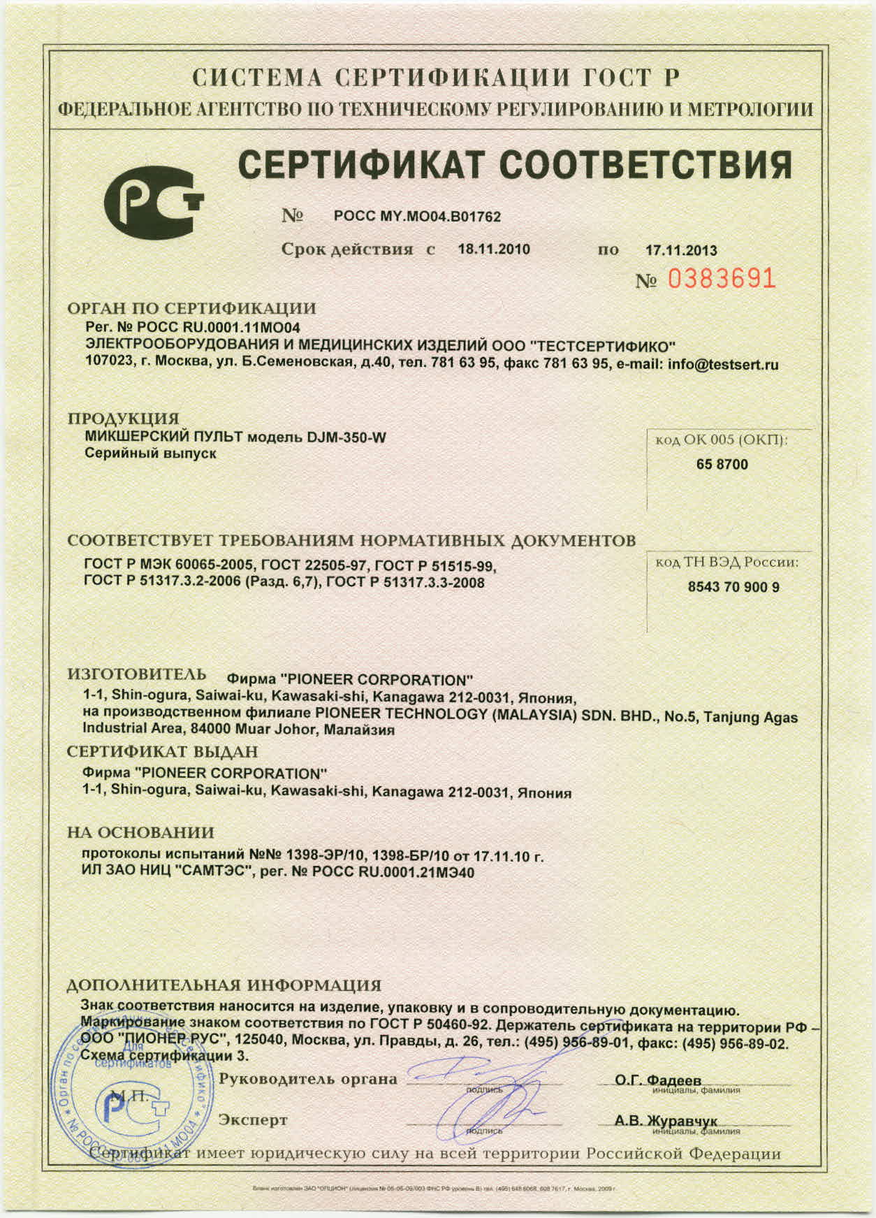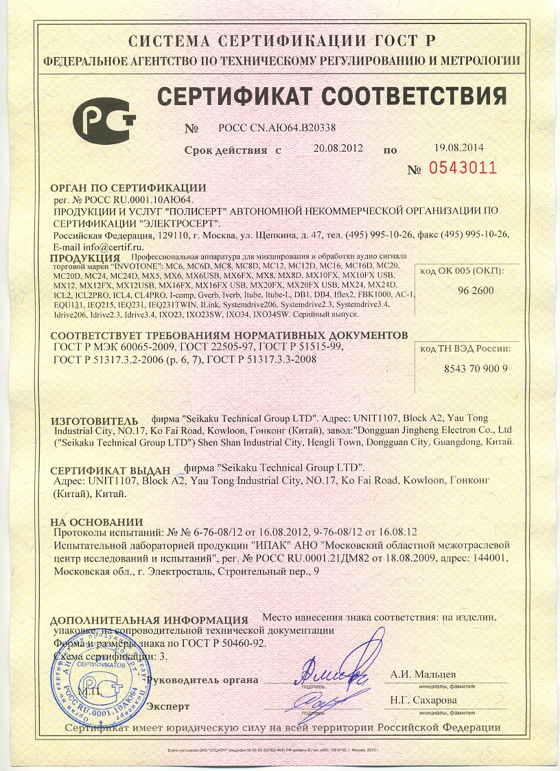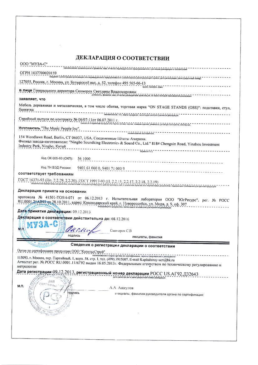 - Декларация соответствия на микрофоны, наушники, радиосистемы, стойки, кейсы, антенны и т.д. (до 18.06.2017 г.) (стр.1) (стр.2)