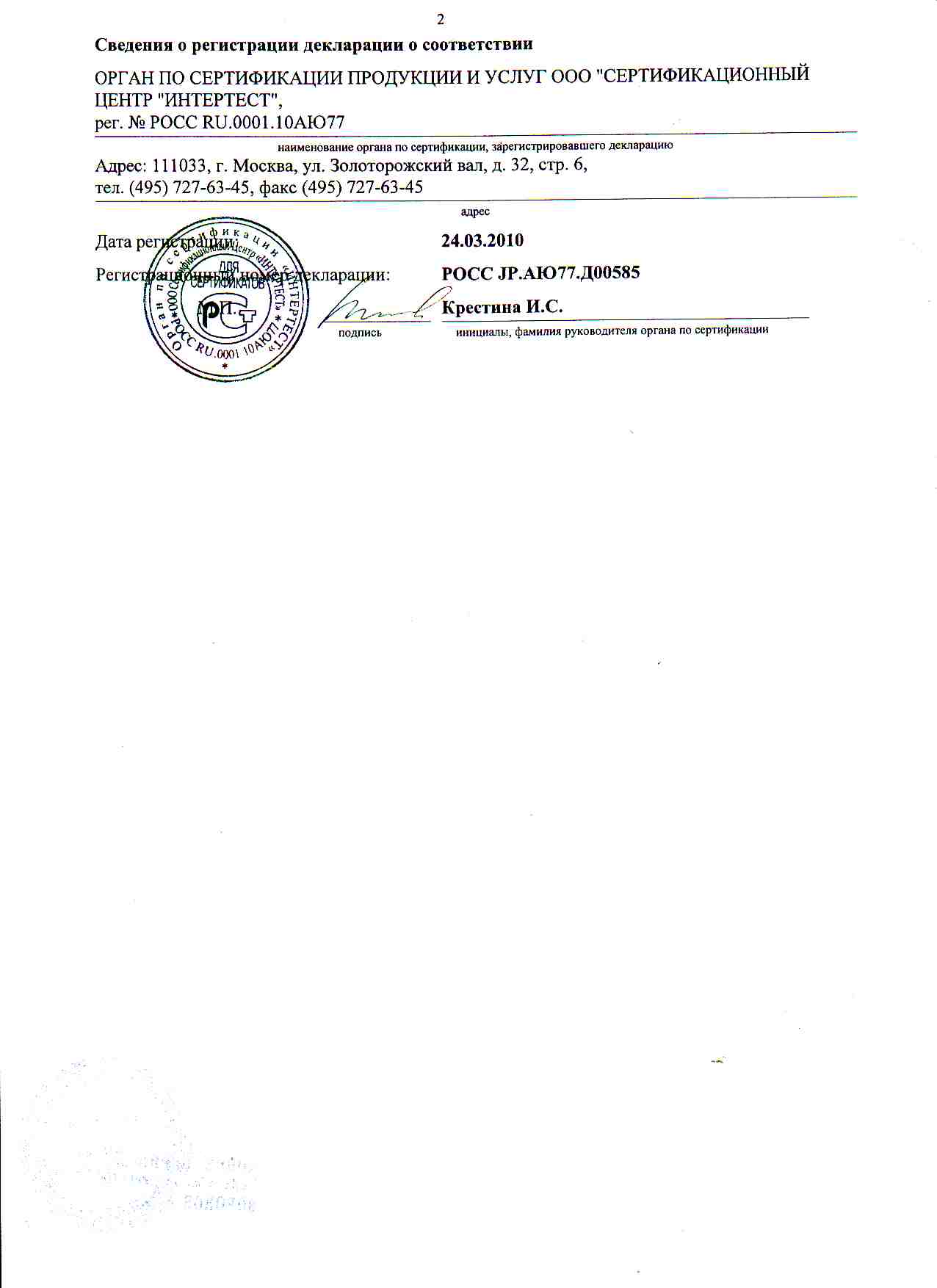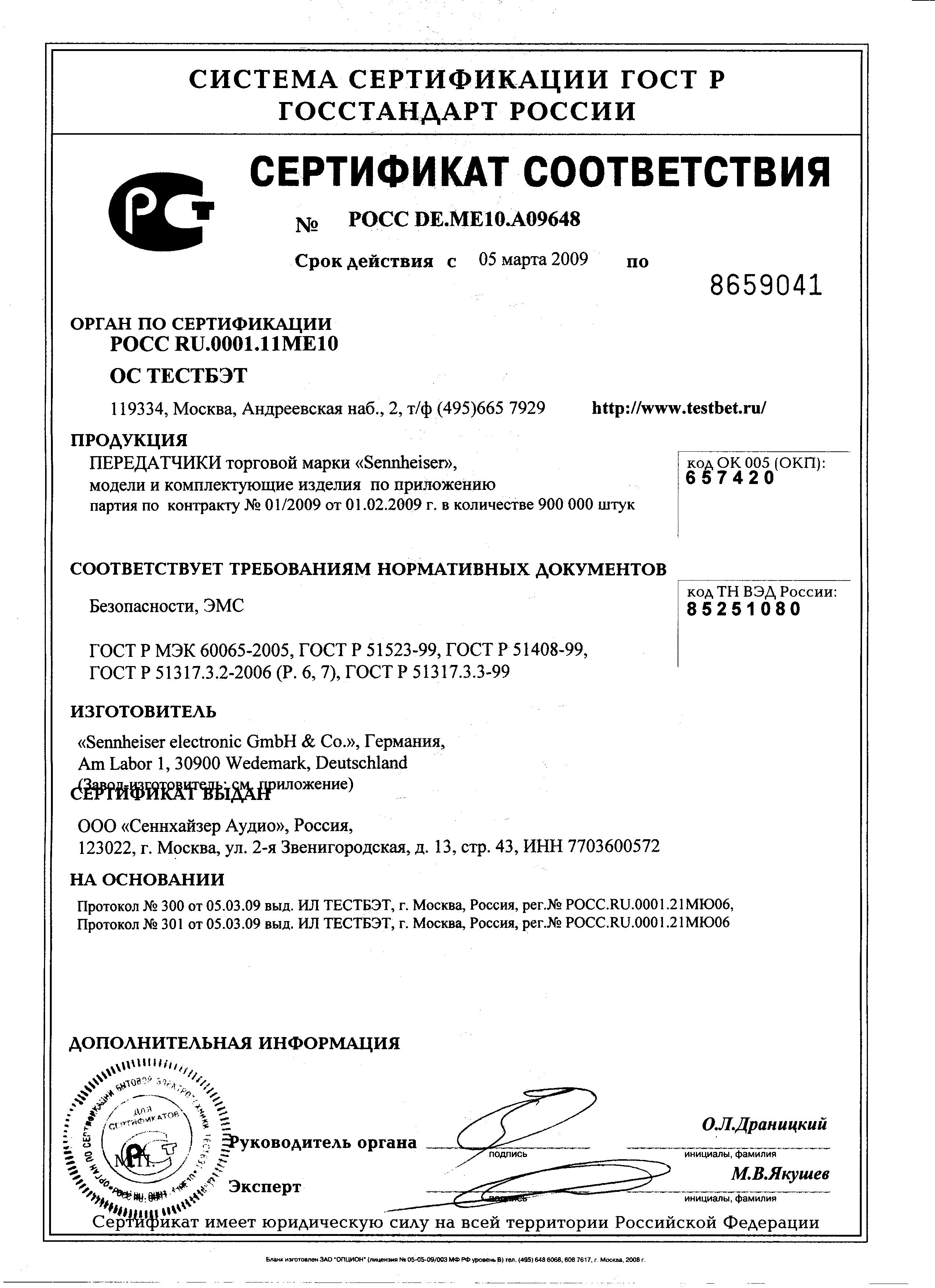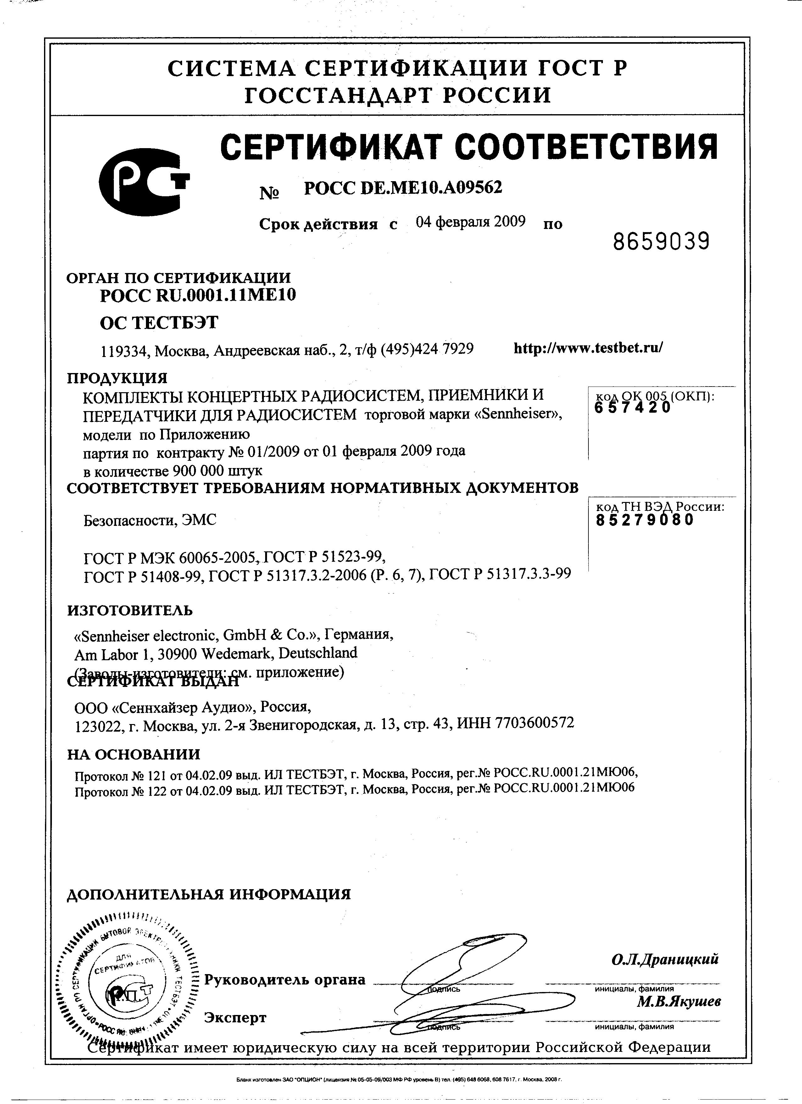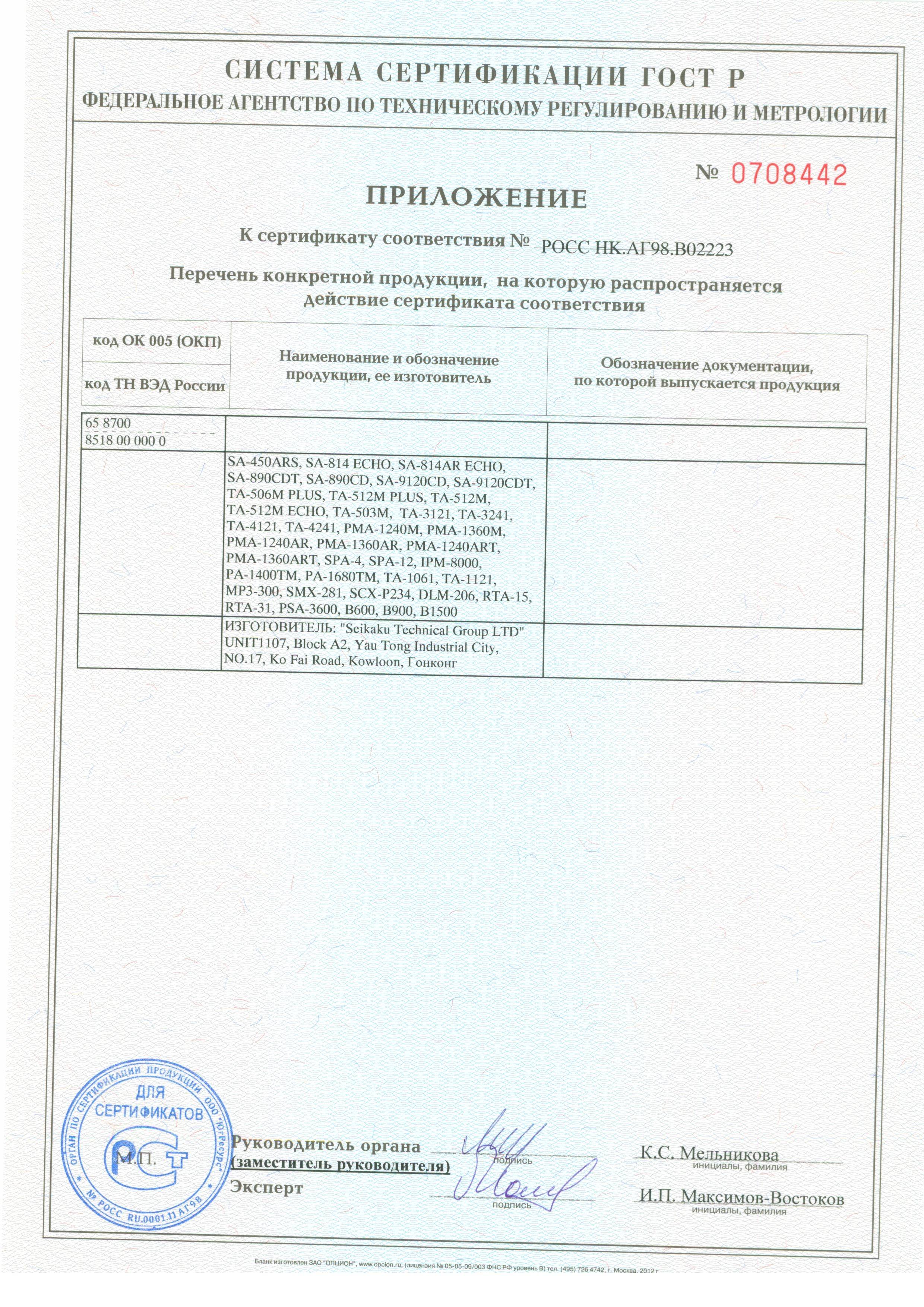 - Декларация соответствия. Радиосистемы (до 28.02.13) (стр.1) (стр.2)