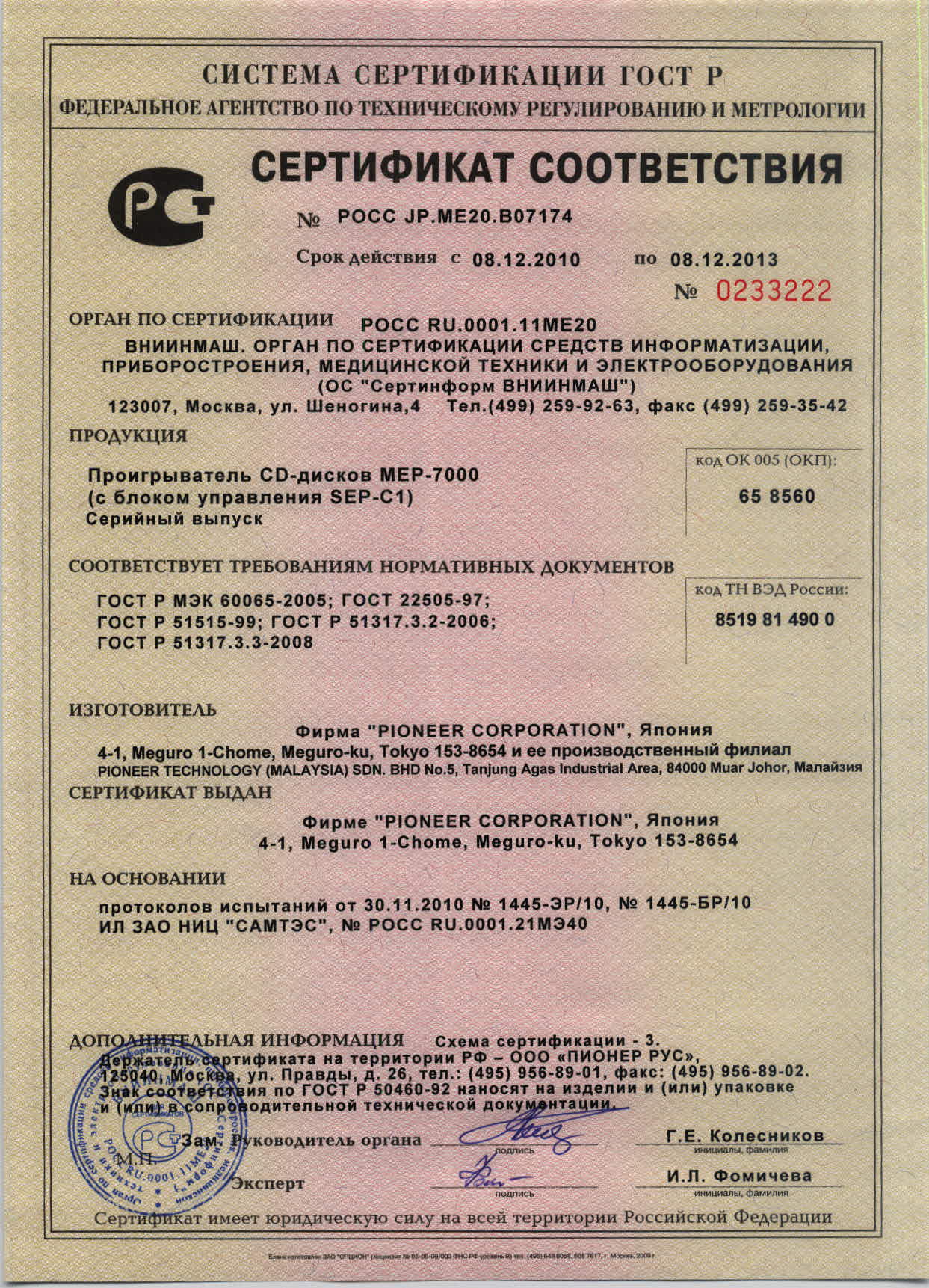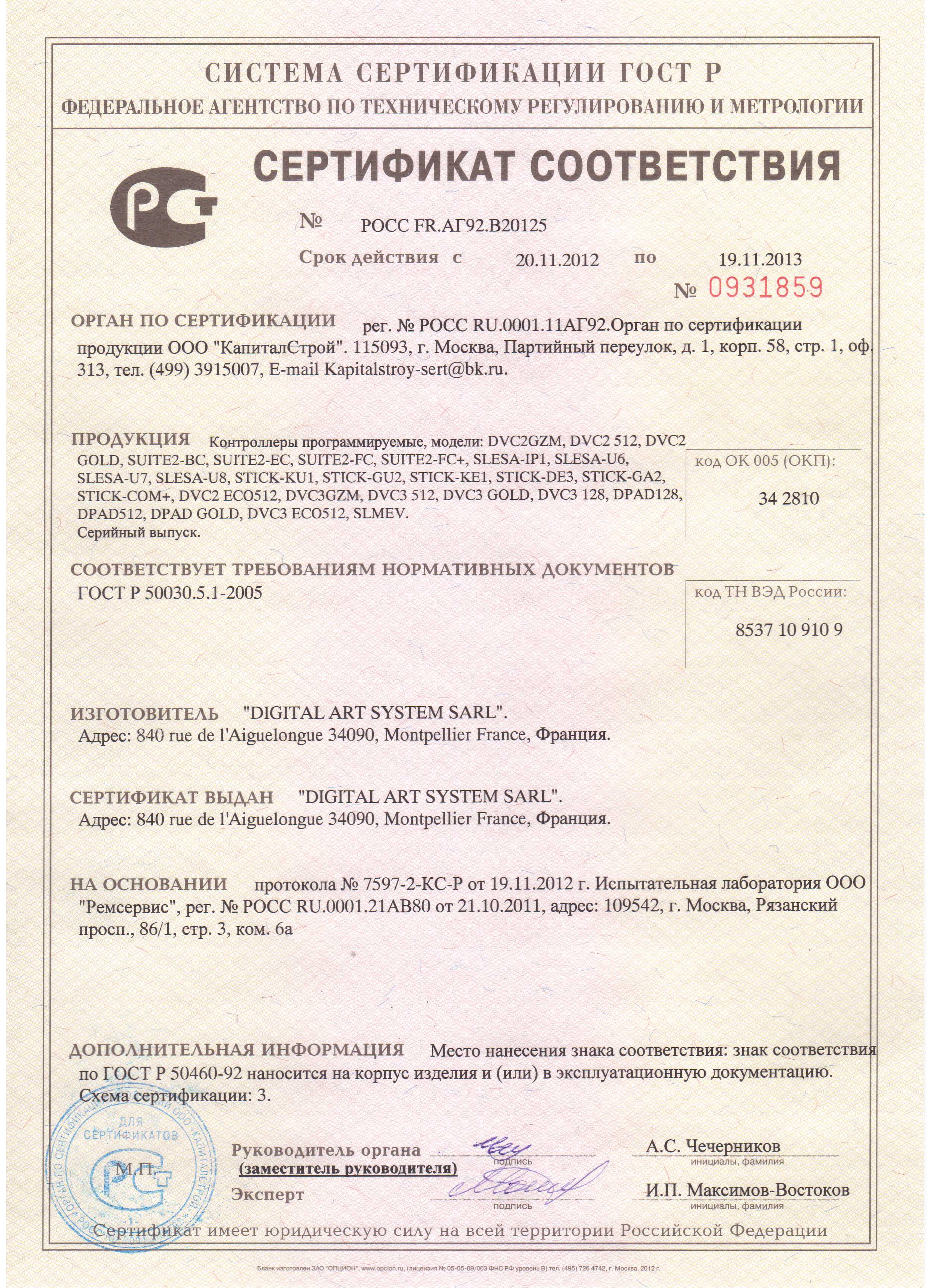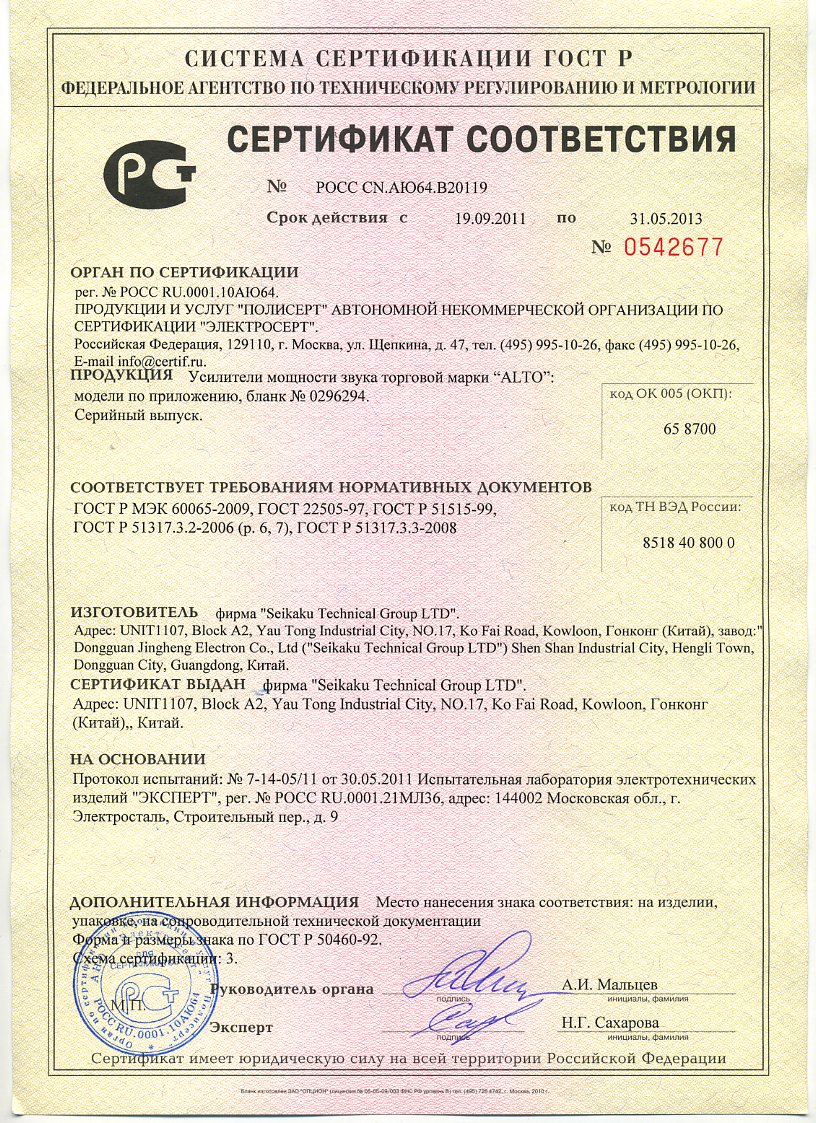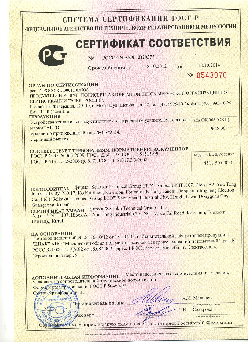 - Декларация соответствия. Радиосистемы (до 28.02.13) (стр.1) (стр.2)