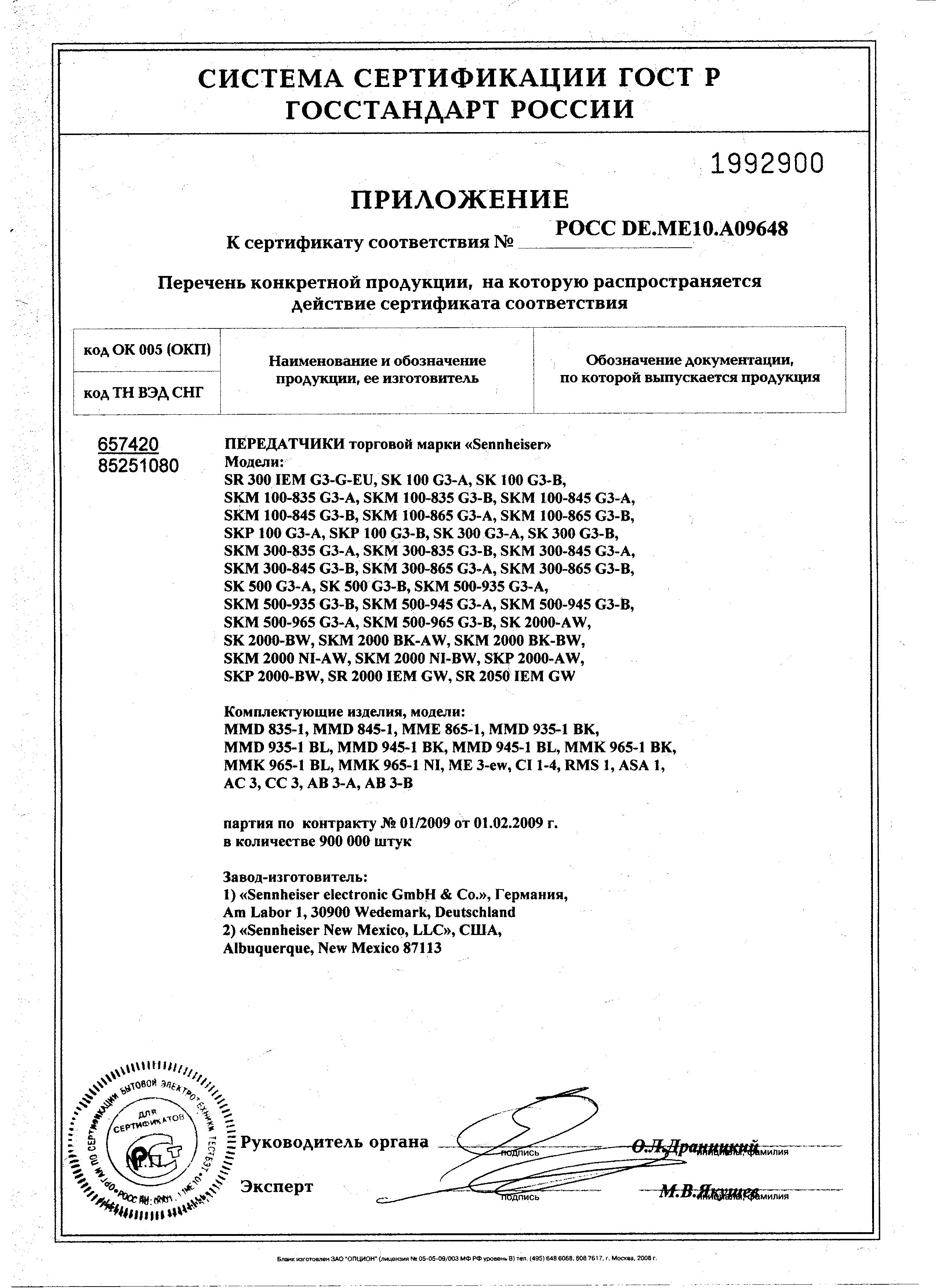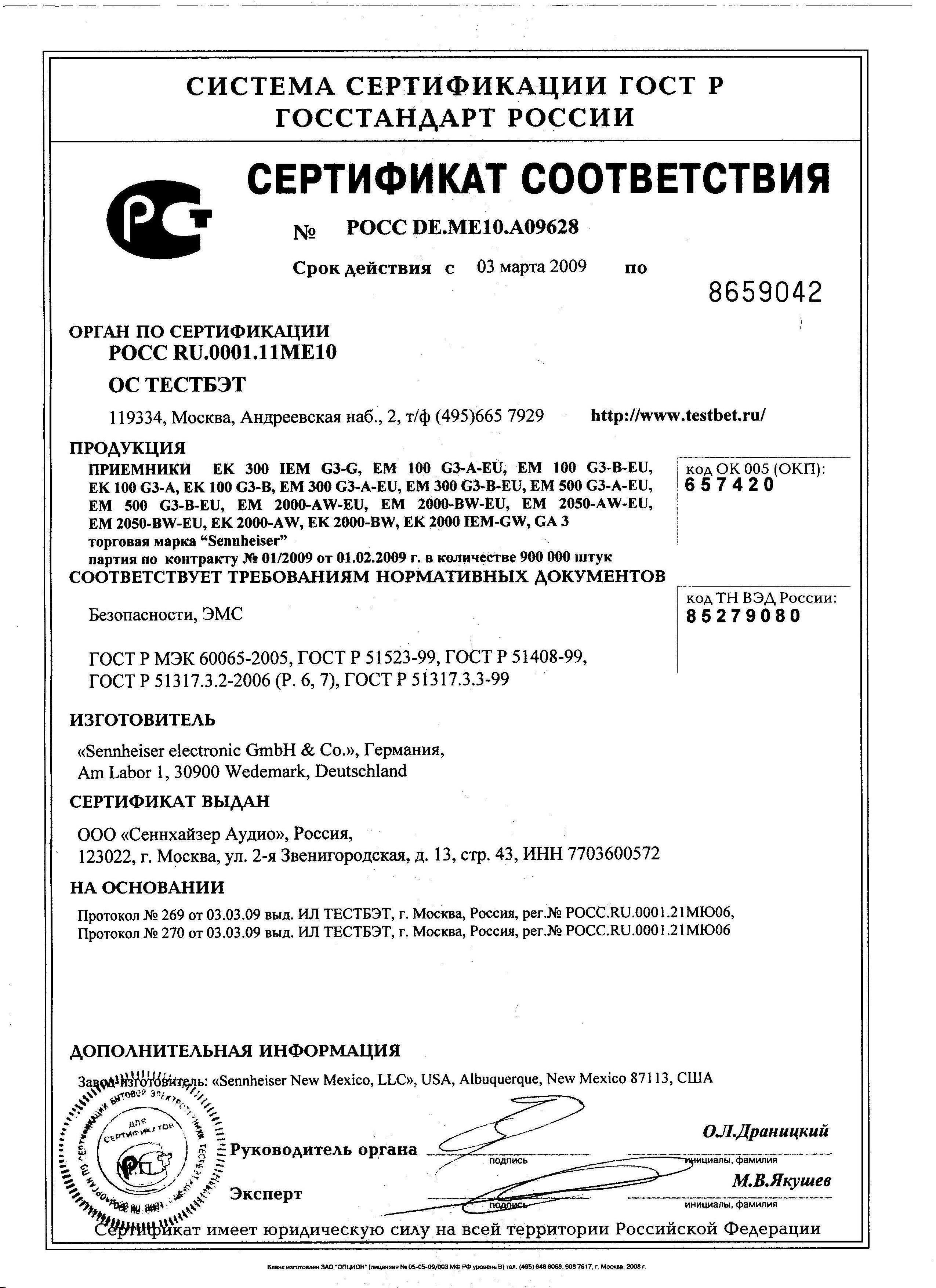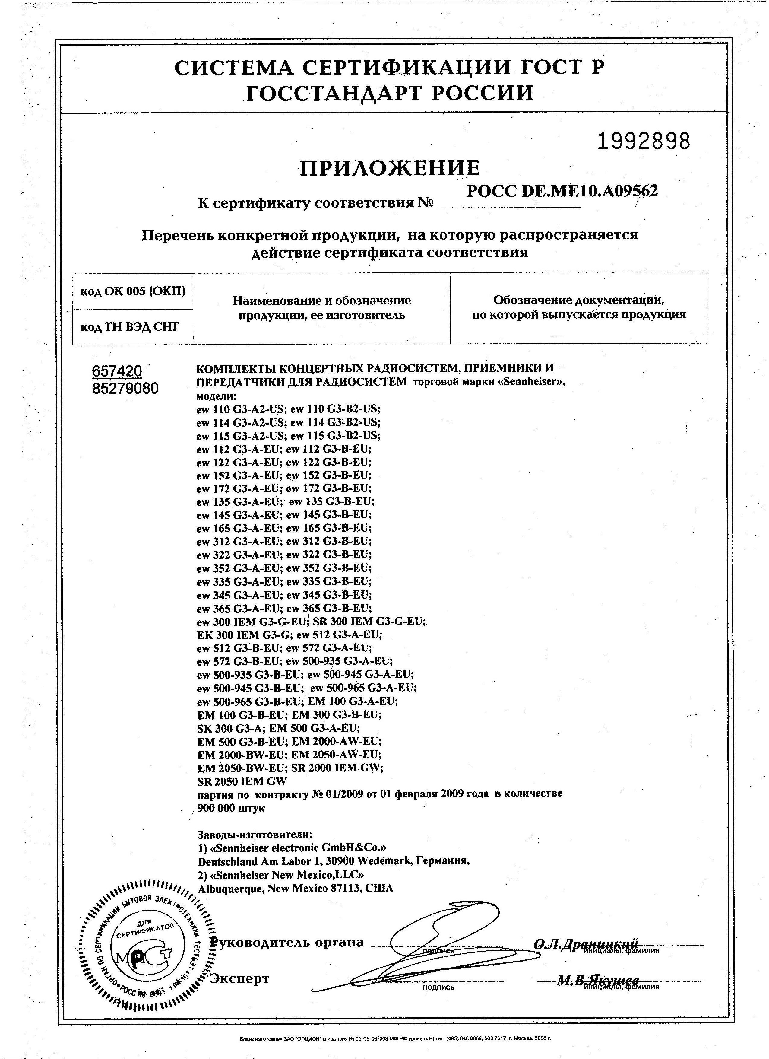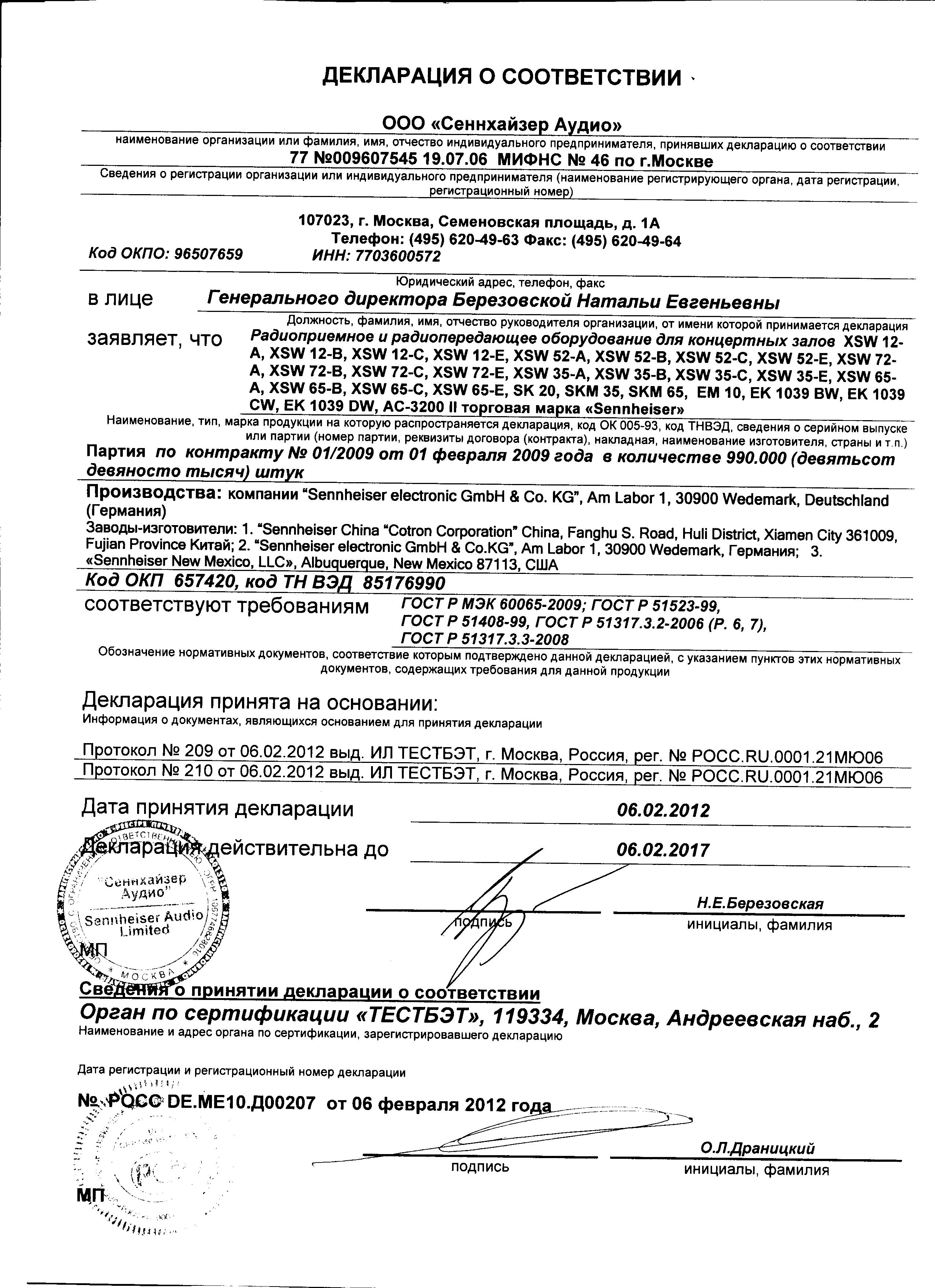 - Декларация соответствия на радиосистемы, приемники, передатчики, микрофоны и аксессуары к ним _____ EK, EM, EW, MKE, ME, SK, SKM, SKP, MKH, MZW, MZH, XSW, E, EAR, HSP и т.д. (до 11.02.2018 г.) (стр.1_____5)