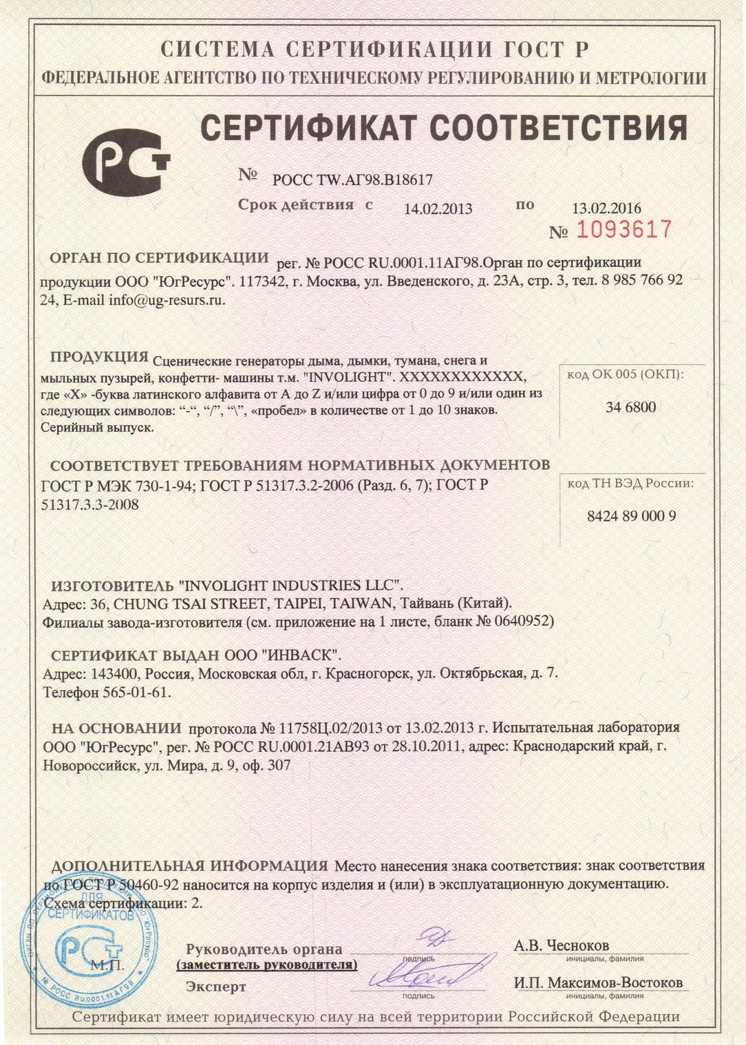 - Жидкости для дымгенераторов GMC и Involight (до 30.07.2014) (стр.1) (стр.2)